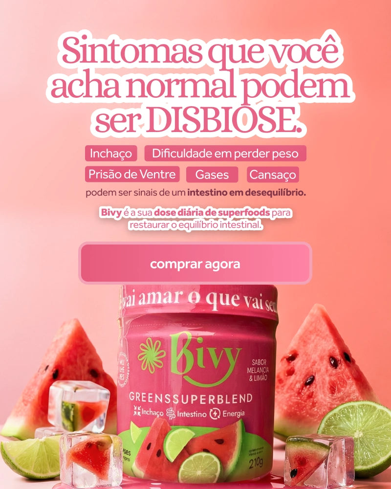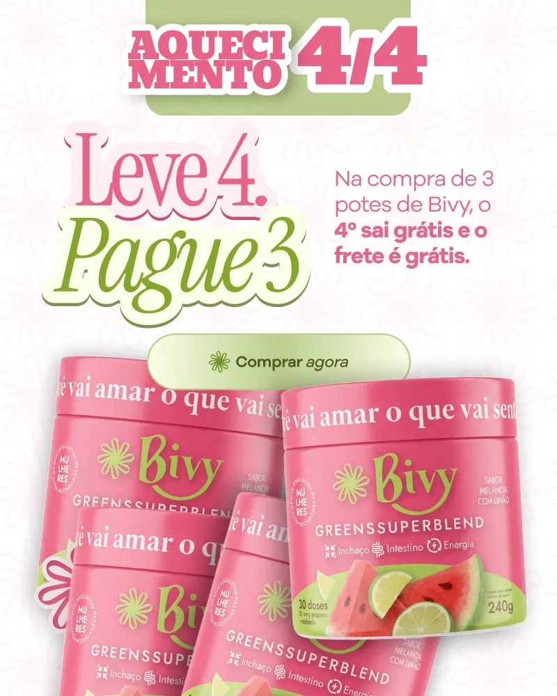 Com Bivy e uma dose por dia, você diz adeus à sensação de estar estufada, ajuda sua circulação a fluir melhor, sente o intestino funcionando, sua energia começa a aparecer e ainda nota mais leveza no corpo e até menos vontade de comer fora de hora por conta das fibras naturais presentes na fórmula.